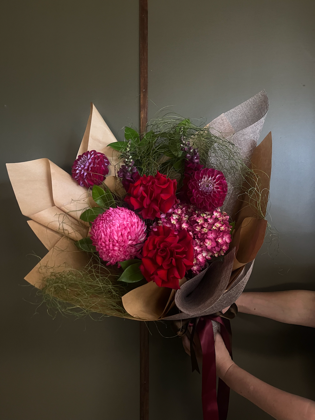 No cookie-cutter bouquets here. We design around the best blooms at market each visit - premium, seasonal flowers chosen by our florists and styled fresh, artful and never formulaic.